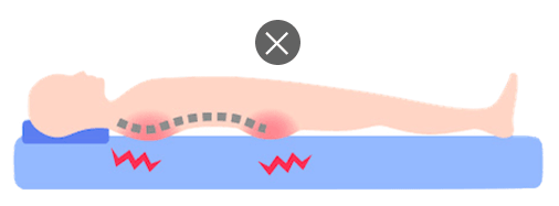 沈み込みすぎて寝返りがにくく、 腰痛や肩こりの原因になる。