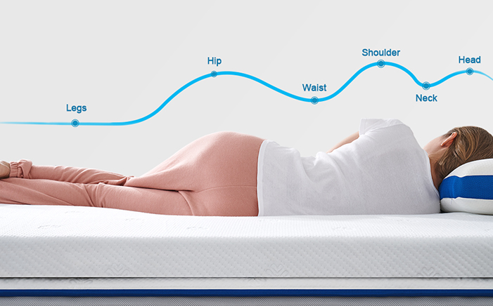 低反発と高反発のよりとこ取りをした適当な反発力で、体の曲線をよりフィットし、腰や肩への負担をなくなる。