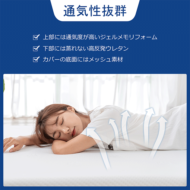 上層部は柔すぎず適度な反発力を持った新素材「ジェルメモリフォーム」を採用
